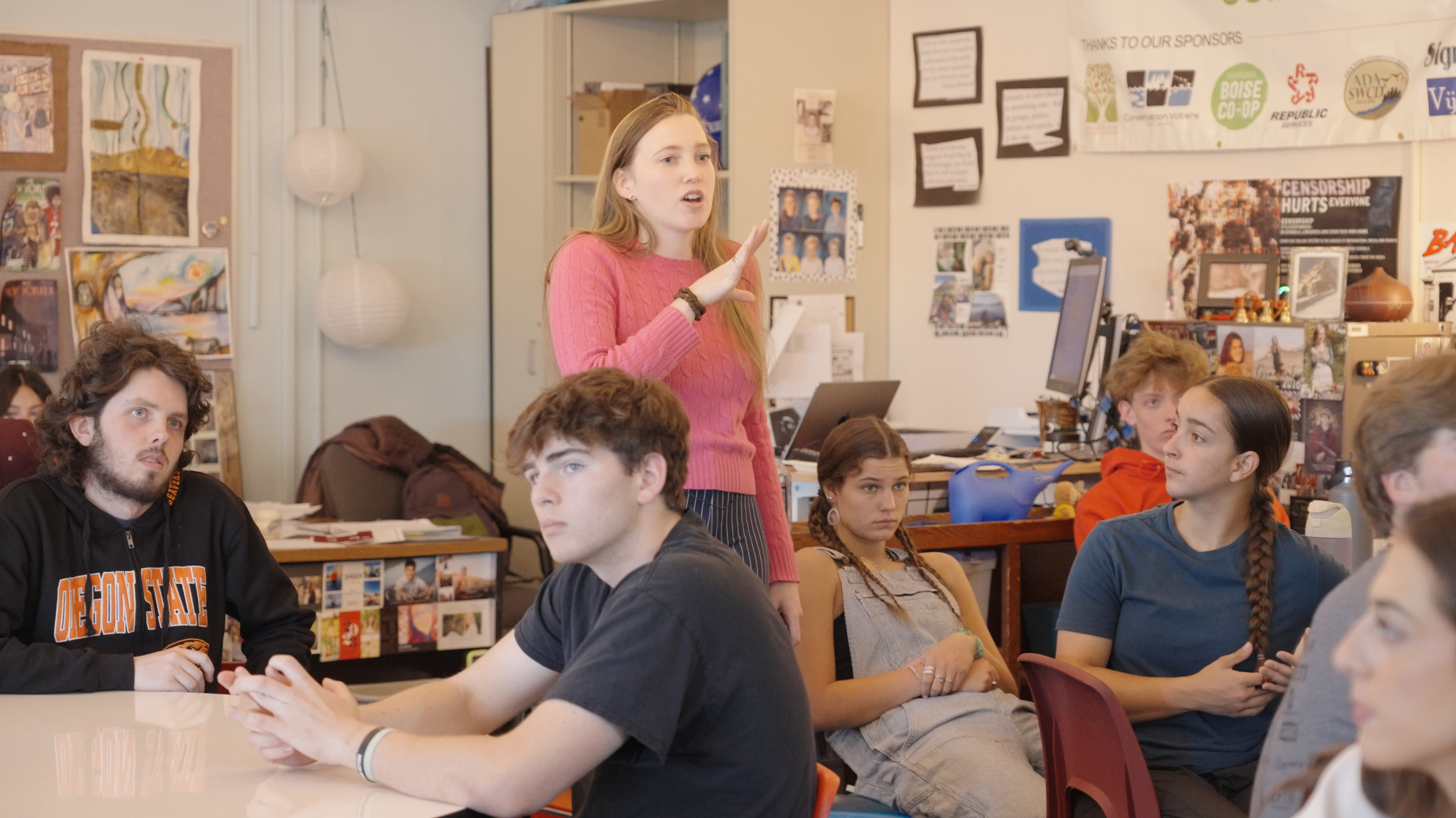 Entrepreneur Terrence Davenport and Marine Corps veteran Tegan Griffith, both featured in American Creed, engaged Facing History students in a dialogue about freedom, fairness, opportunity, and the meaning of citizenship after screening a selection of clips from the film.